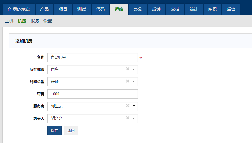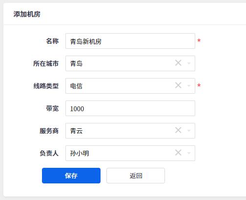 点击机房页面右侧 添加机房 按钮,即可进入添加机房页面。