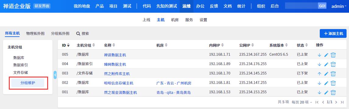 点击分组维护即可添加主机分组: