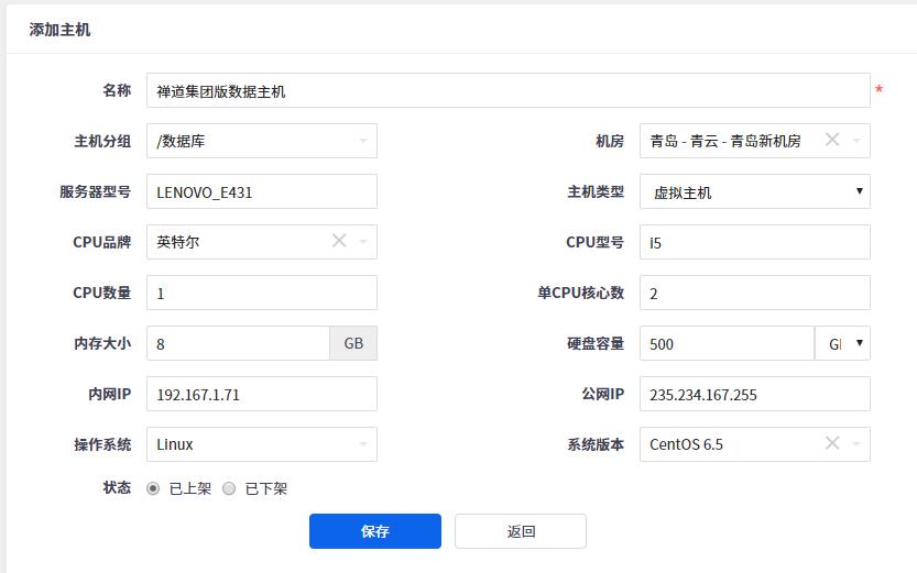 点击主机页面右上角 添加主机 按钮,即可进入添加主机页面,