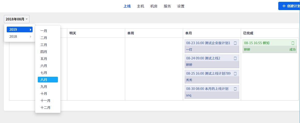 点击左侧时间的可以按照月份查看上线计划。