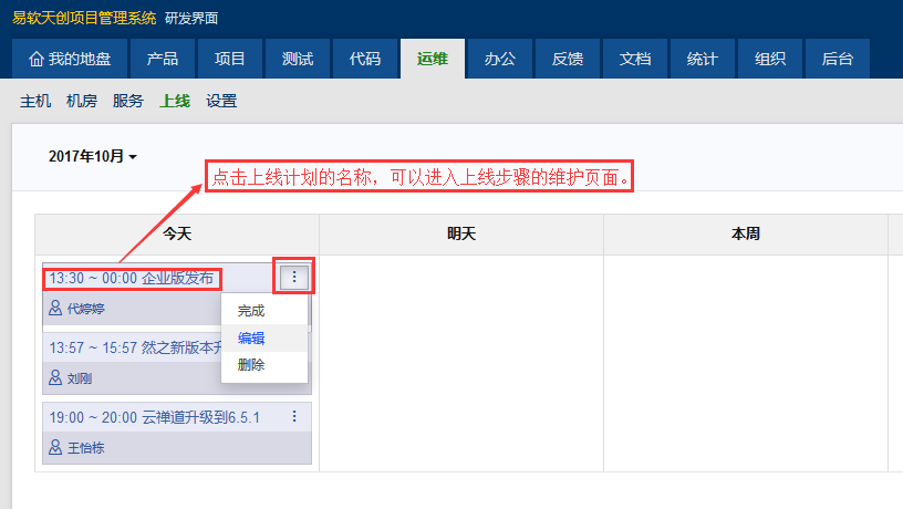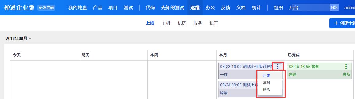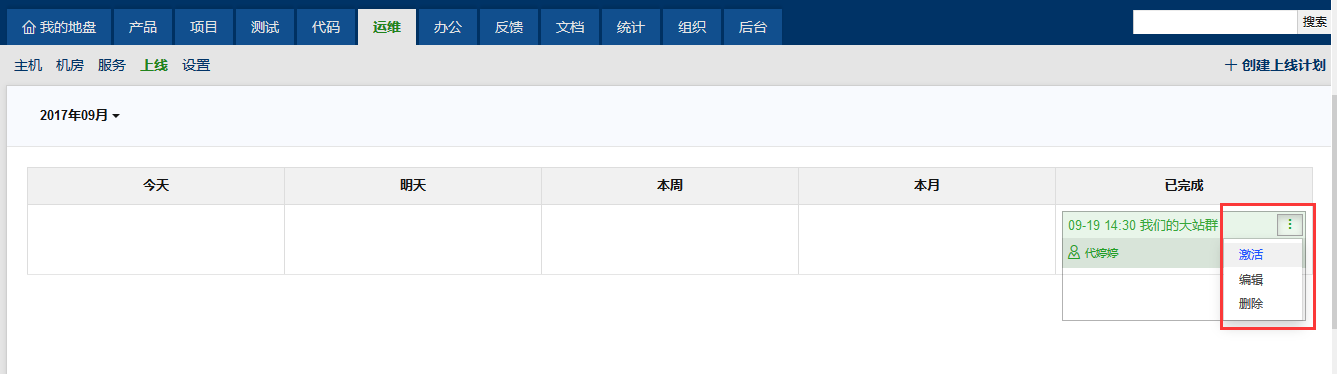 已完成的上线计划,还可以根据实际需要做激活和编辑、删除操作。