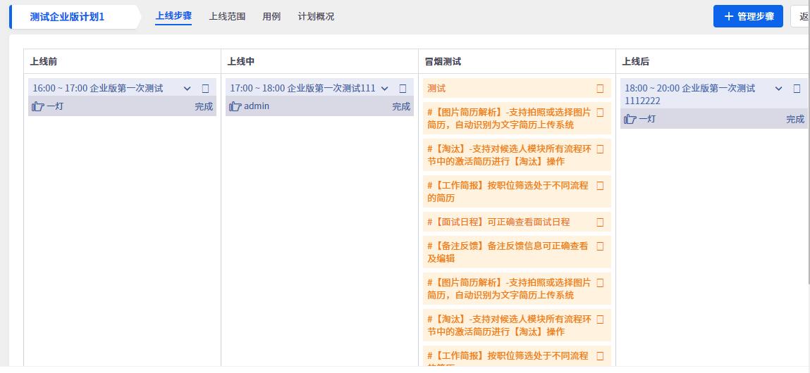 点击上线计划的名称,可以进入上线步骤的维护页面。
