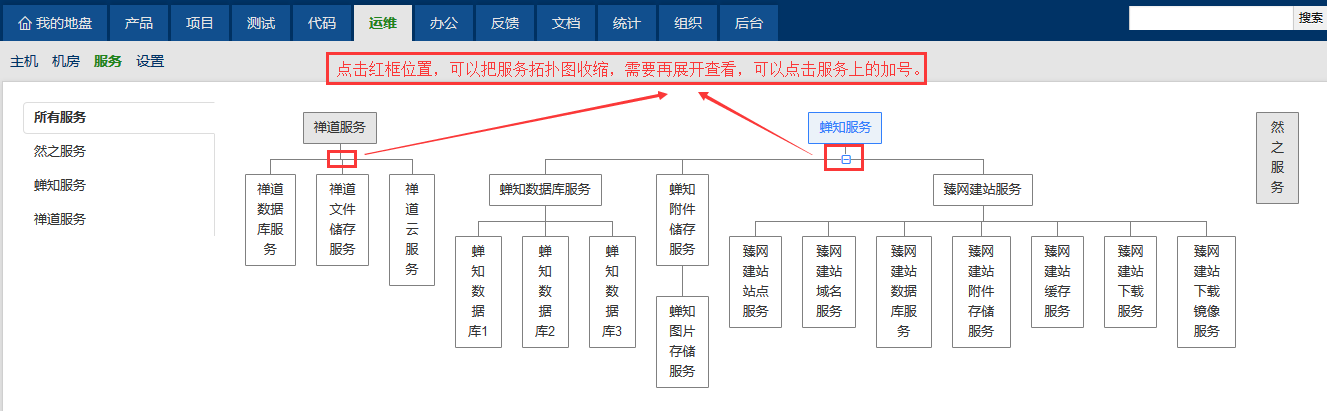 服务拓扑图的展开查看和收缩。