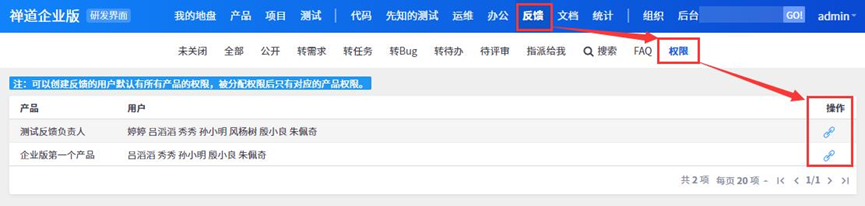管理员登录,在反馈--权限里,可以根据产品设置哪些用户有权限提交反馈问题。