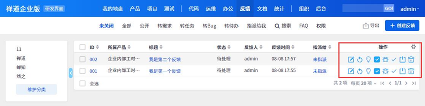 反馈的分类功能可以自定义。管理员可以在研发界面的反馈里,直接维护反馈分类。