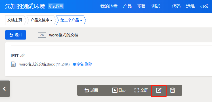 点击在线预览页面右上角的 编辑图标,就可以进入文档的编辑页面。