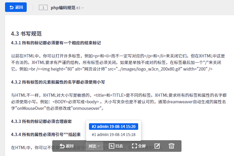 添加的文档类型的文档,多次编辑后,可以通过对比,区分开每次修改的部分。