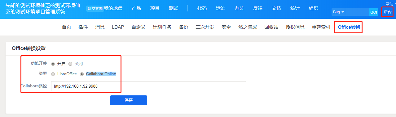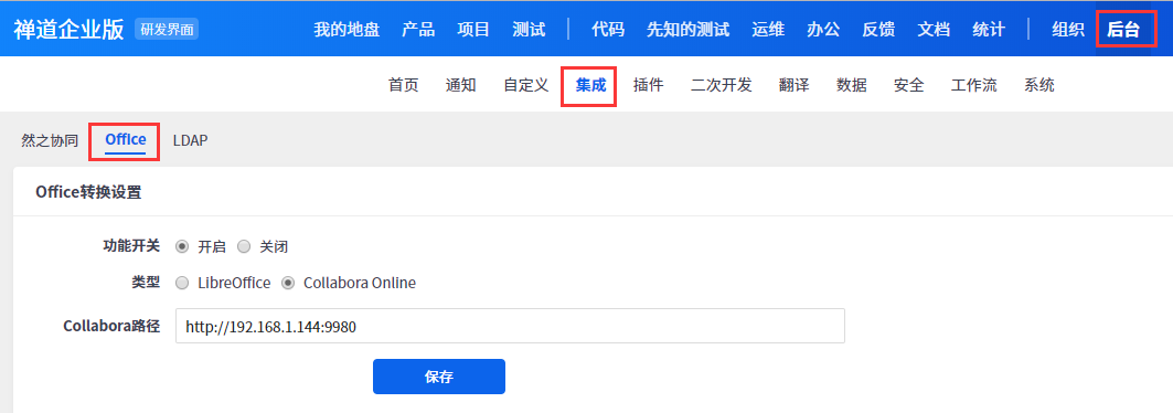 2.3 禅道的服务器和collabora office所在的服务器网络必须是互通的。