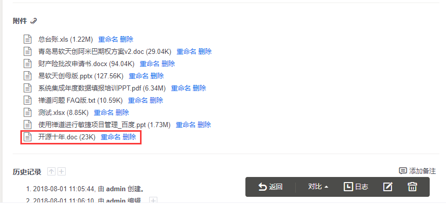 禅道企业版的文档管理增加了附件在线预览和文档版本对比功能。