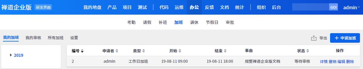 尚未通过审批的加班,可以在列表里编辑、删除和撤销自己的加班记录。