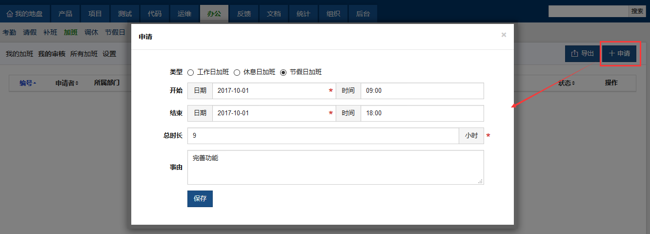 在我的加班页面的右上角有新建按钮,在新建加班框里填写好具体内容,保存即可。