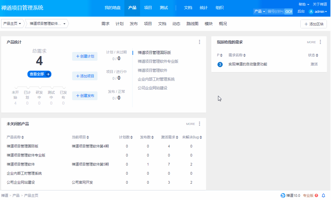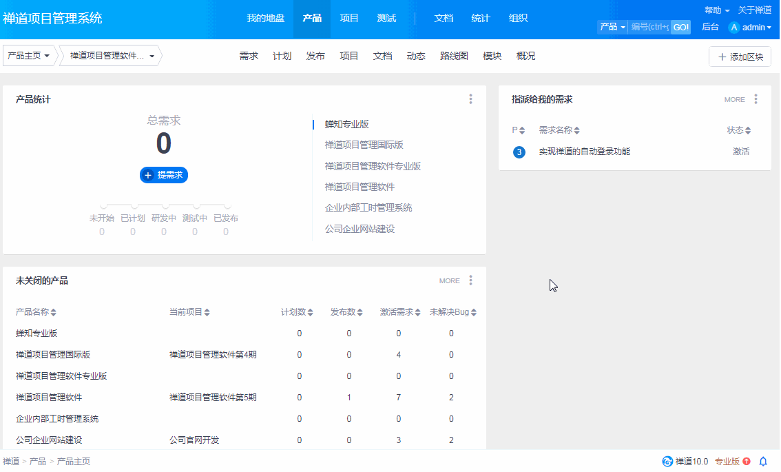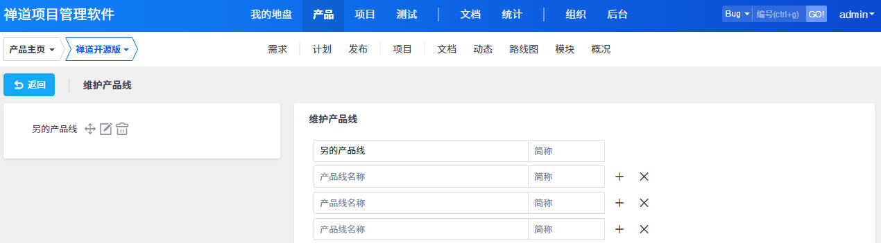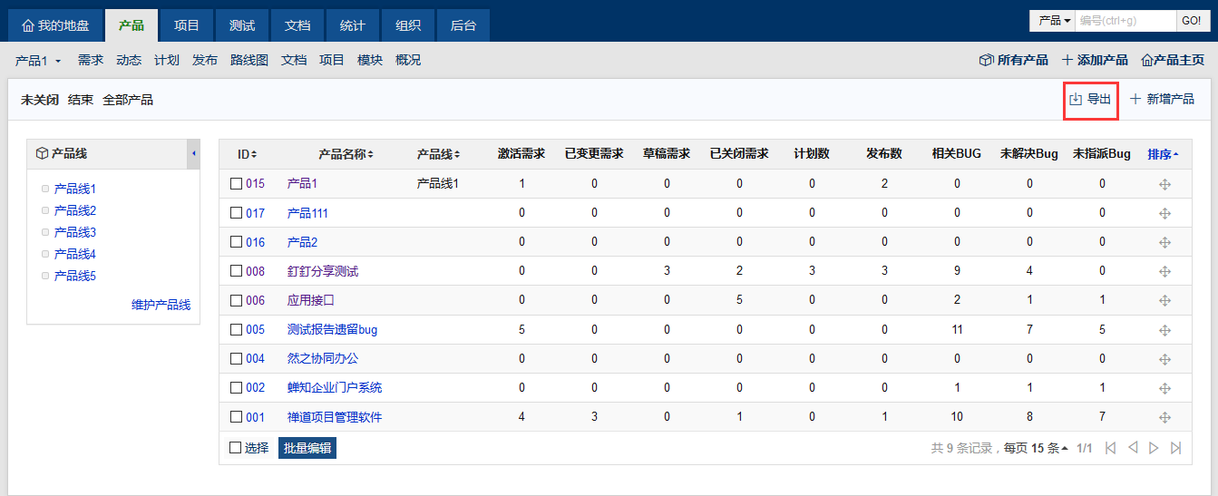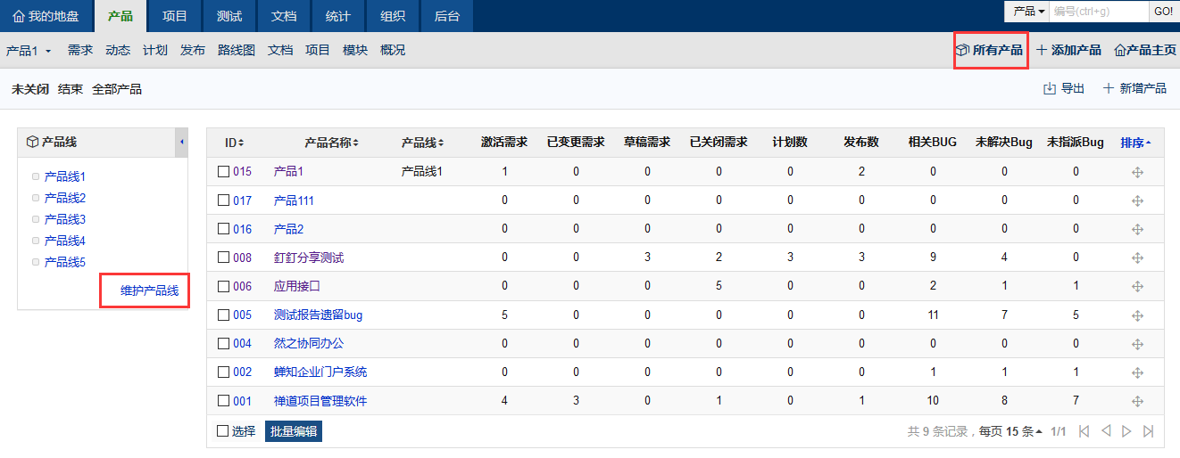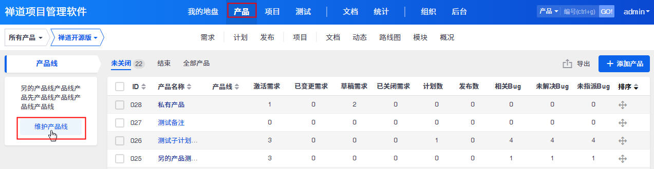 禅道9.6版本新增了产品线的功能,可以把产品按照产品线来管理和维护。