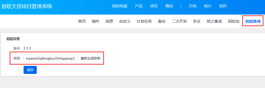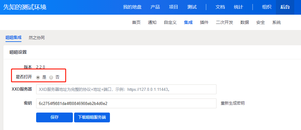 2、服务器的配置里的密钥,必须和禅道后台--喧喧集成里的密钥一致。