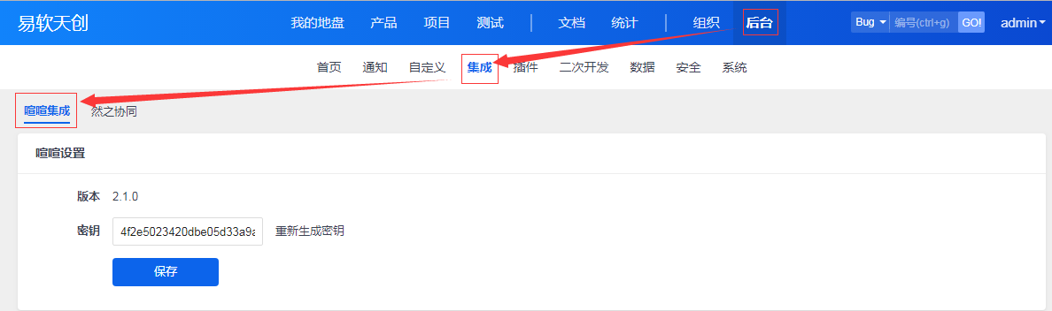 到禅道后台---喧喧集成,查看喧喧的设置。