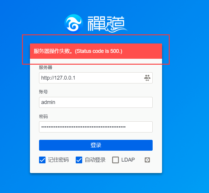 3、禅道用户名和密码登录喧喧失败