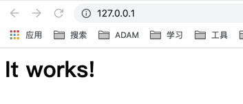 浏览器访问 localhost 或者127.0.0.1,"It works!"表示服务已启动,如您不需要修改web资源路径以及端口号,可跳转到PHP环境配置部分。