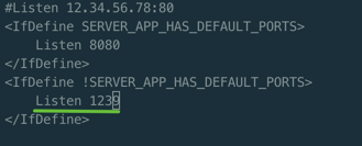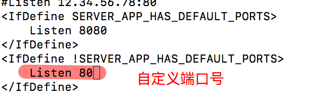 3. 端口号修改,搜索 "Listen 80" ,将默认80端口修改为其他端口(注意不要与其他服务端口号冲突),修改后需重启Apache服务。