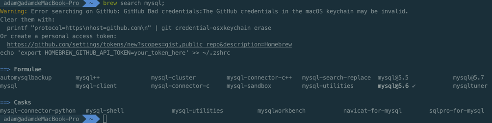 Homebrew安装后,执行如下命令安装 Mysql5.6,执行过程较慢,需耐心等待。