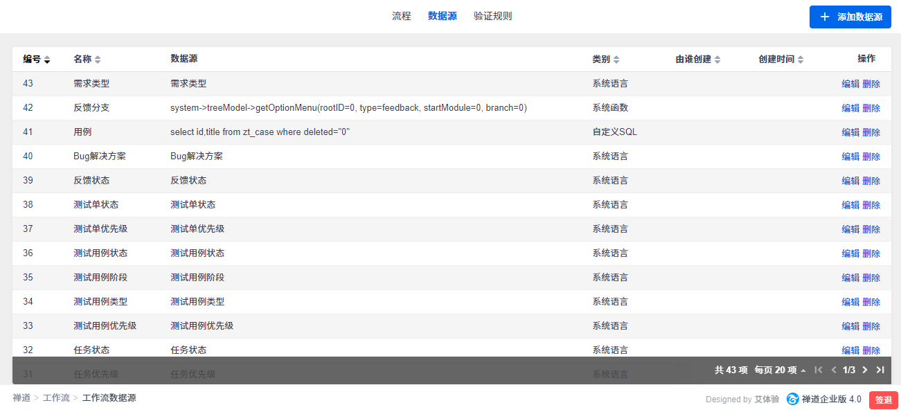 数据源,主要是记录着流程对应数据库的一些源信息。数据源可以用于字段等处,一般用于生成下拉列表数据。