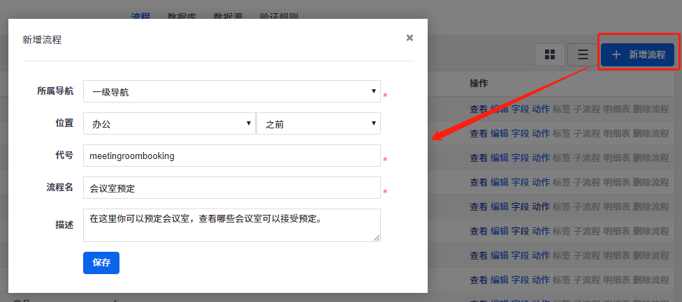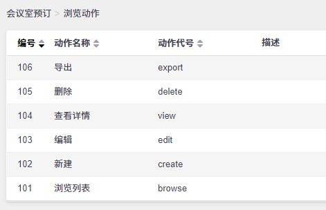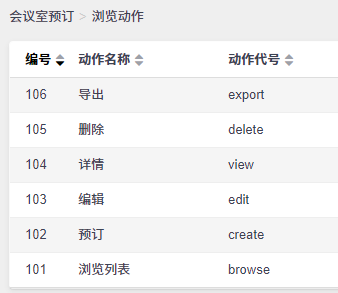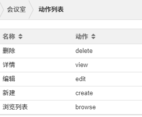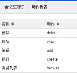 会议室预订和会议室的字段我们添加完成后,现在就可以添加动作。