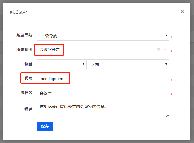你可以根据我们在“预定会议室”设计的字段,添加上系统没有的字段。