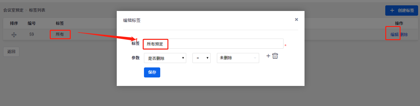 点击动作列表右侧的“标签”按钮就可以进入标签列表页,然后点击页面右上角的“创建标签”,进入标签的提交页面。