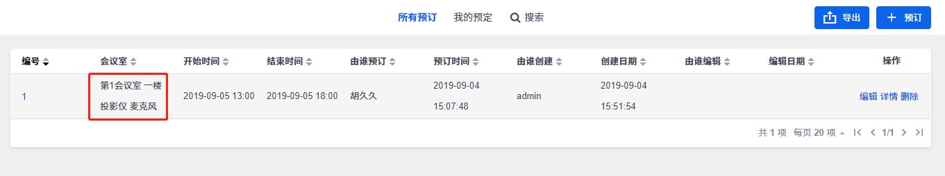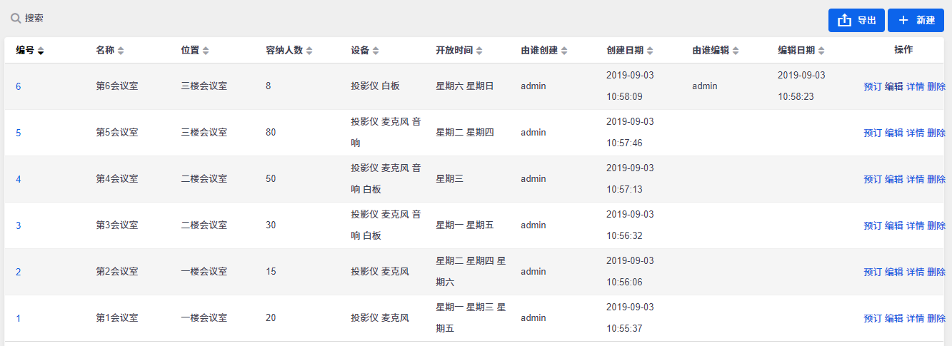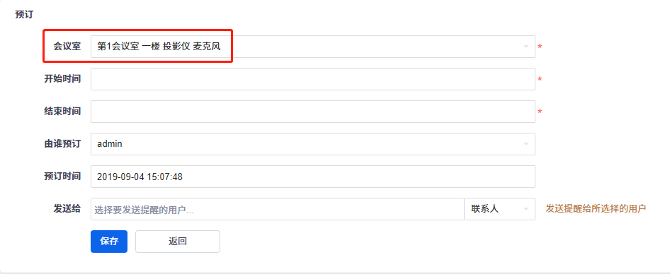会议室信息维护好了之后,我们就可以开始预订会议室了。