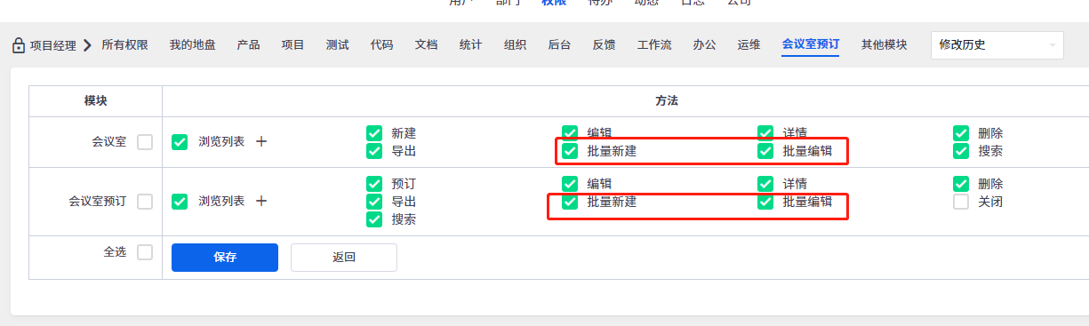 用户要使用到这个批量操作的功能,需要管理员到组织--权限里给分配批量新建和批量编辑的权限。