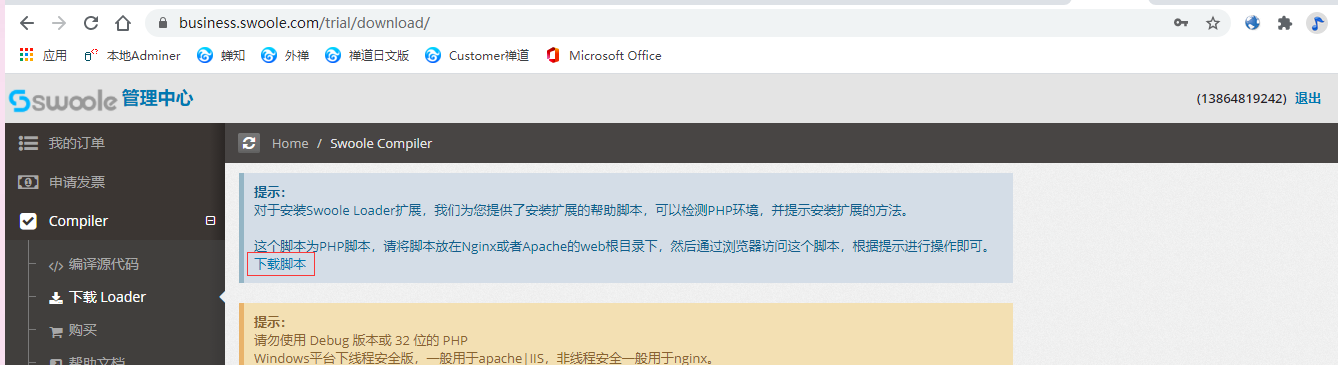 1.1 通过下面的地址下载loader-wizard:https://business.swoole.com/trial/download/