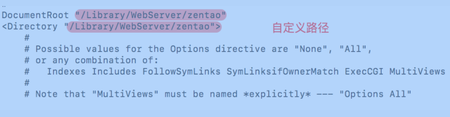 2. 修改web访问路径,打开 httpd.conf 配置文件,查找 "DocumentRoot",修改此部分路径,路径中不能出现中文与空格,路径为真实路径,修改后需重启Apache服务。