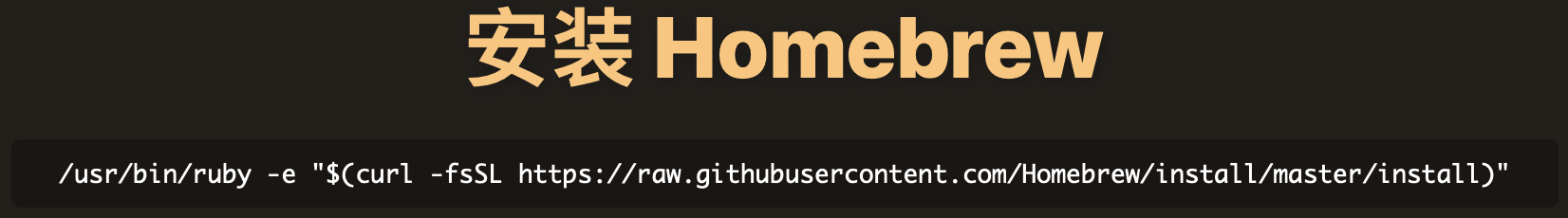 首先安装 Homebrew 包管理器工具,在终端中执行如下命令,其他资料参考官网:https://brew.sh/index_zh-cn