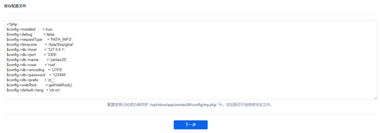 4、安装步骤中配置数据库时,数据库密码请务必填写禅道Windows一键安装包集成运行集成面板--密码--数据库密码里的密码。