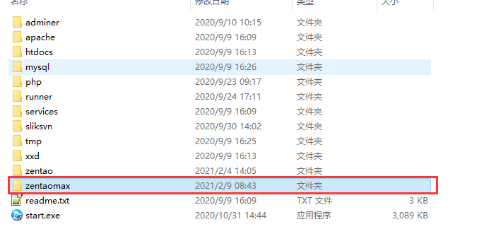 3. 将解压出来的zentaopms文件夹重命名为zentaomax,把zentaomax文件夹复制粘贴到禅道xampp包目录里。