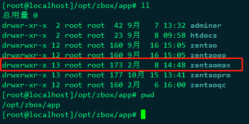 3.将解压得到的zentaopms文件夹改名为zentaomax并将其放到/opt/zbox/app目录下。