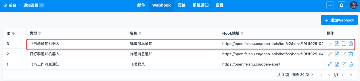 进入禅道 后台--通知设置-Webhook 添加Webhook。