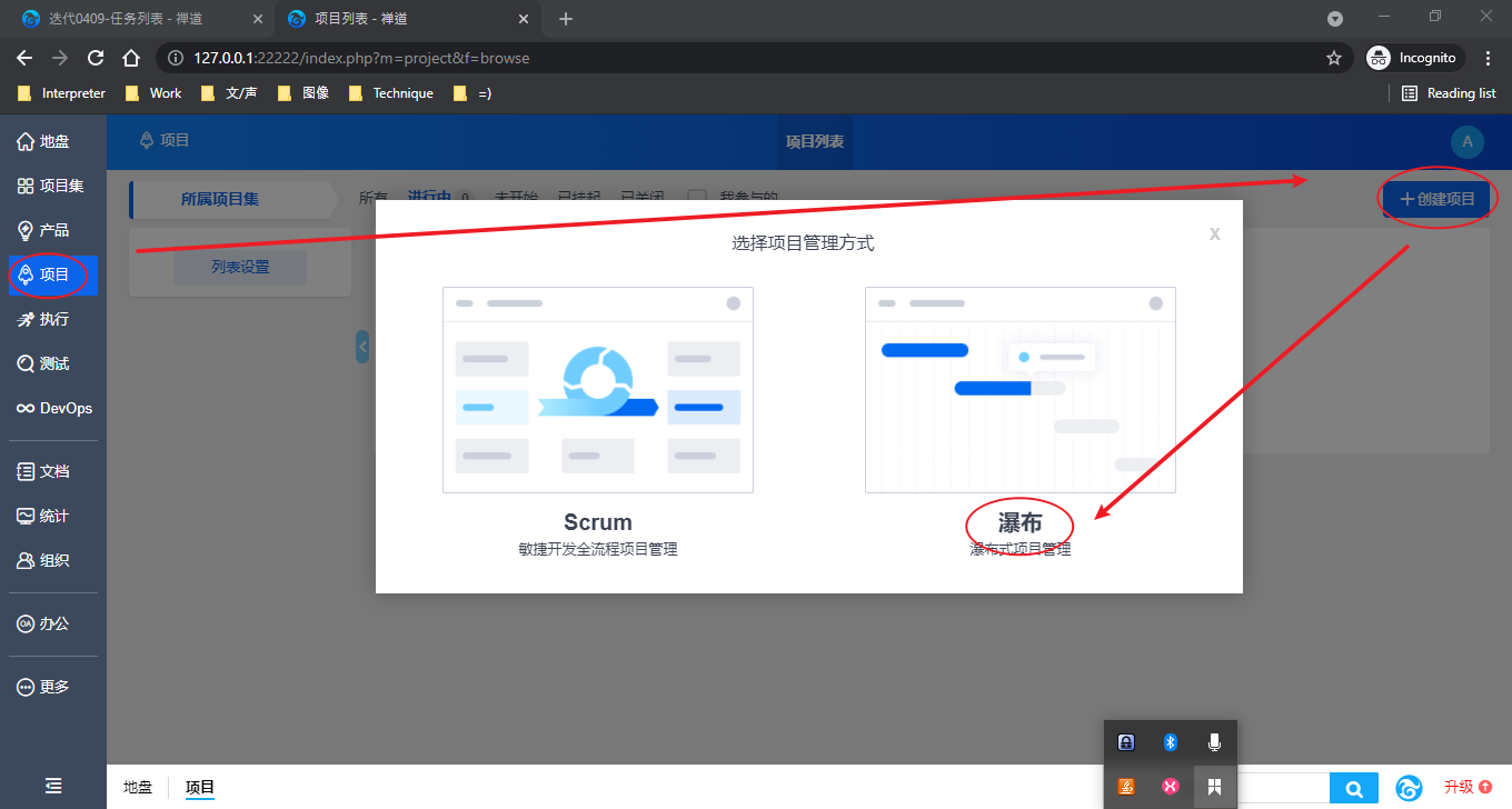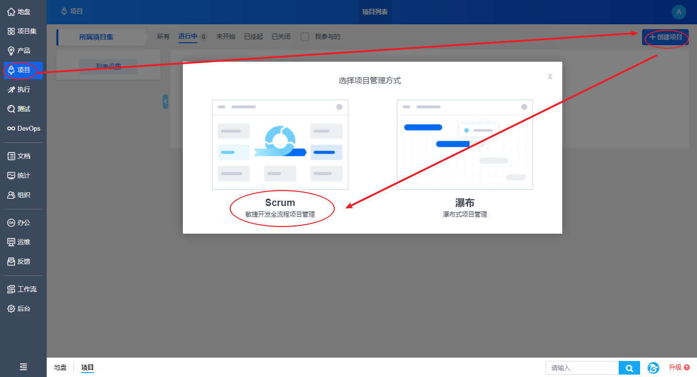 禅道18.2版本开始,项目新增了融合敏捷和融合瀑布项目。