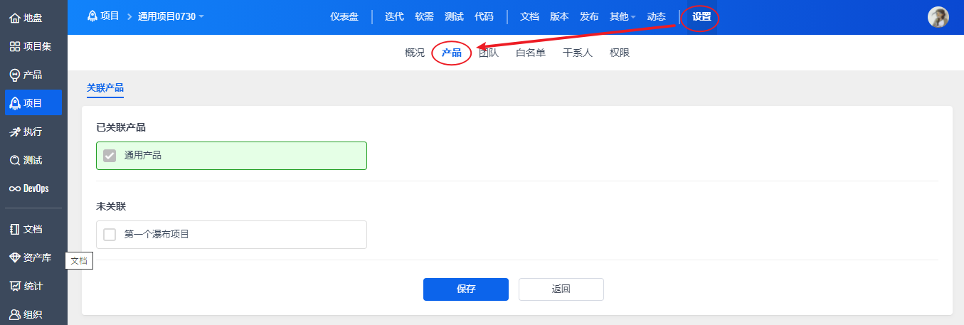 项目管理方式点击选择融合瀑布,填写好信息,点击保存即可。