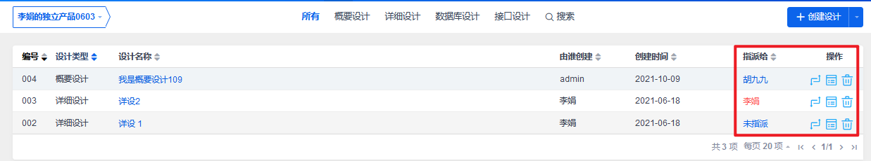2、变更、指派给、删除设计