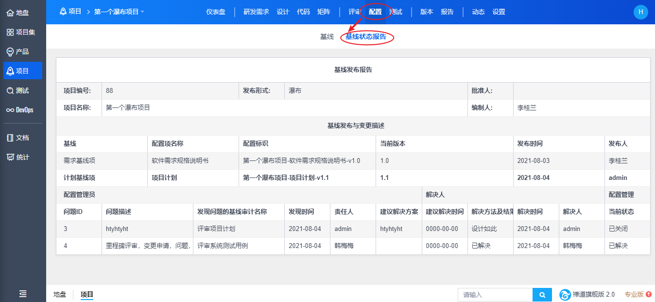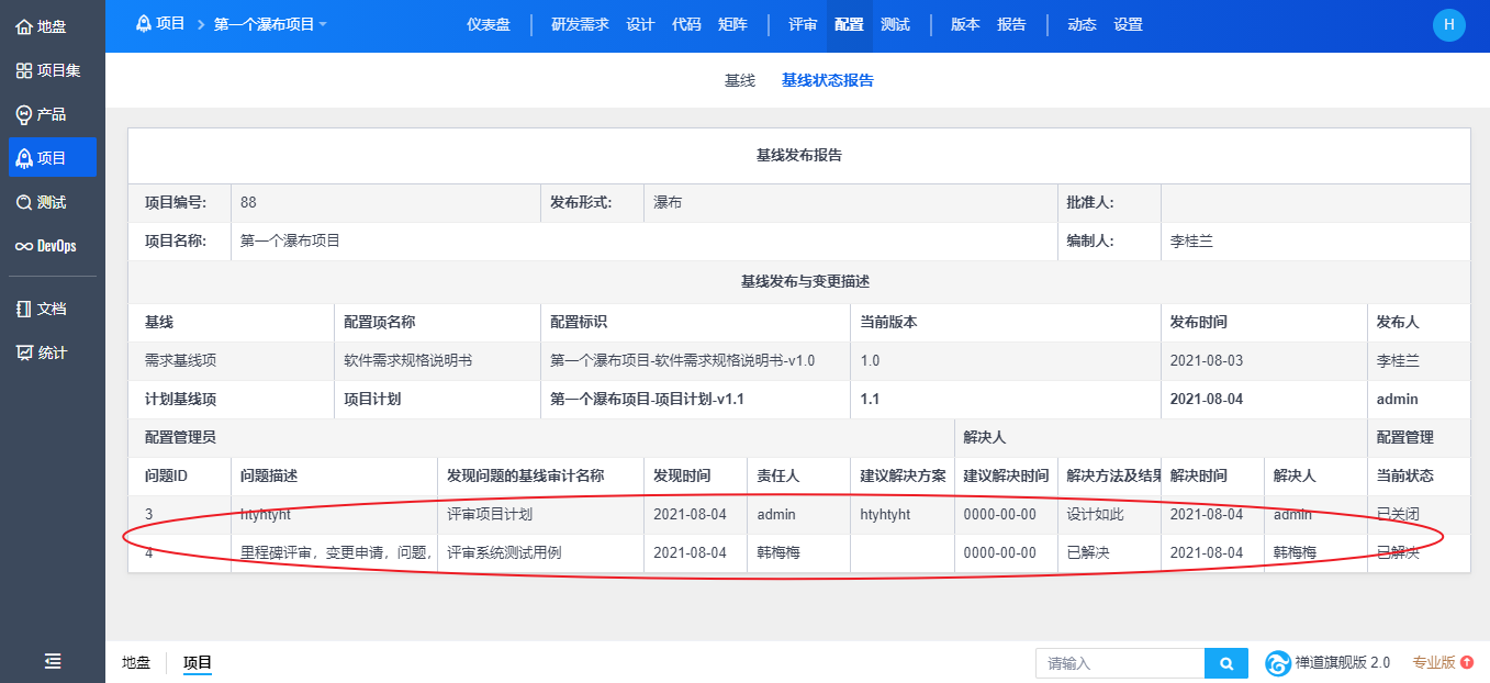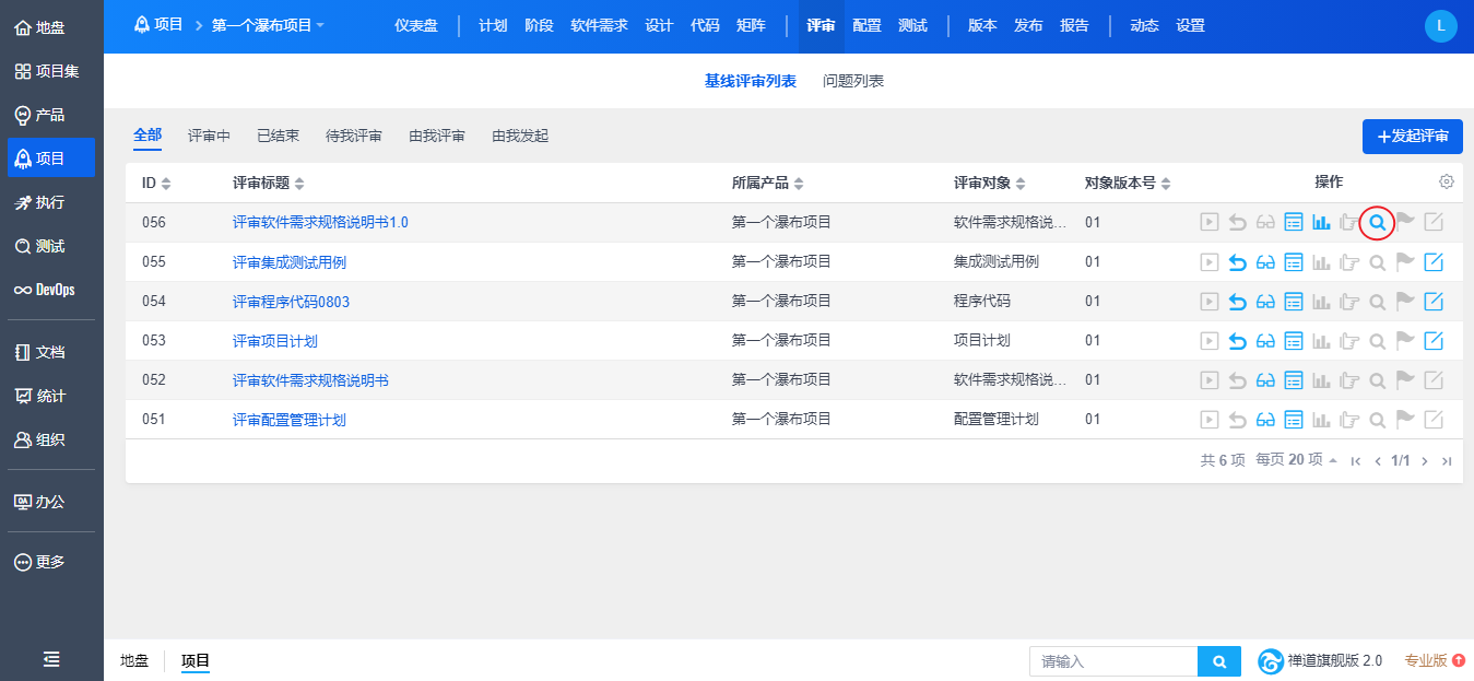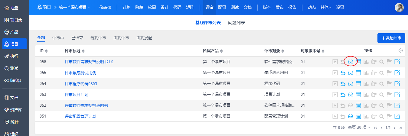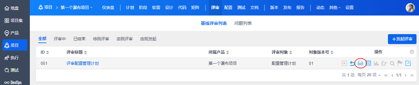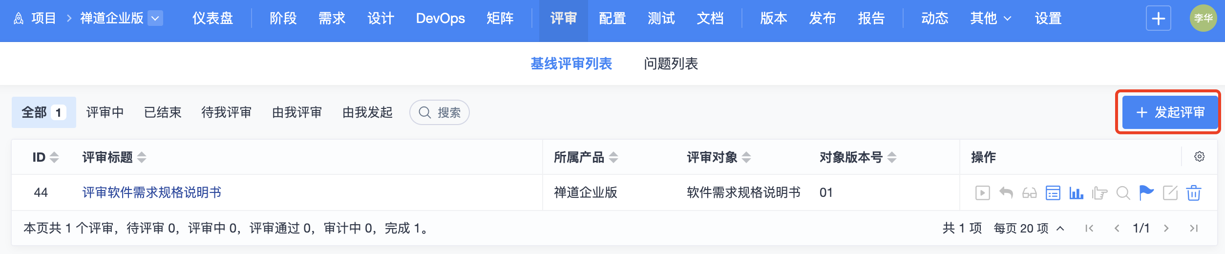 解决不符合项后,进入“基线评审列表”,再次发起评审。