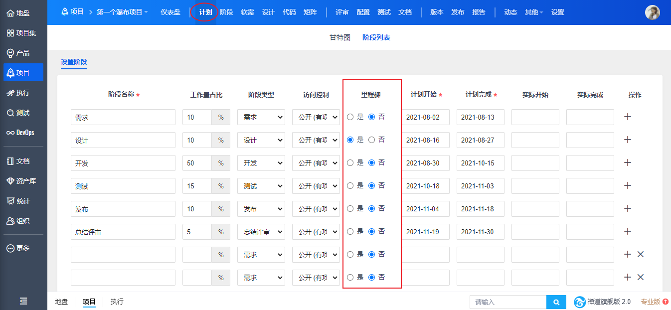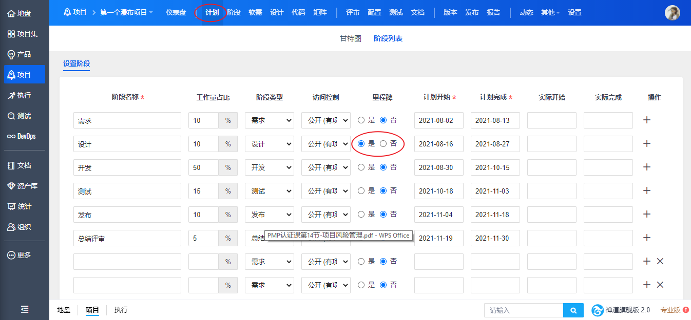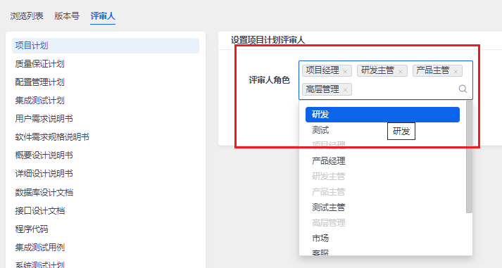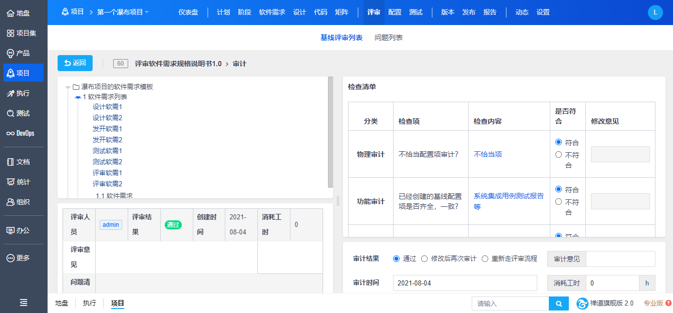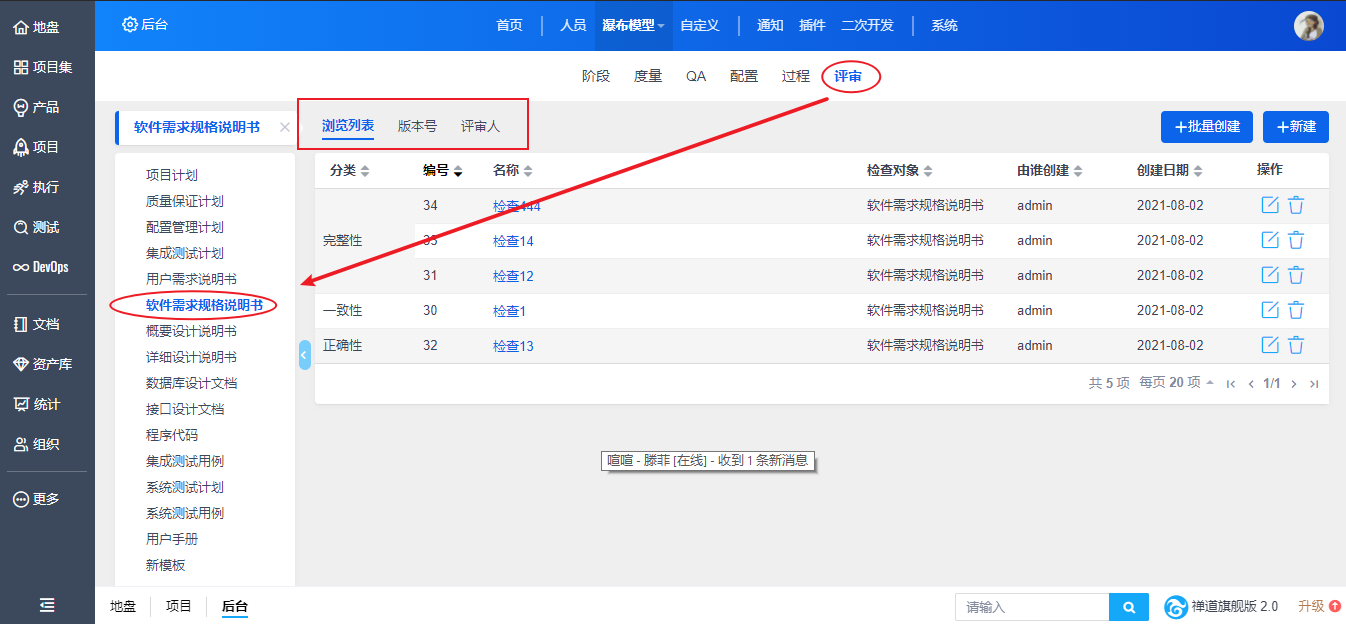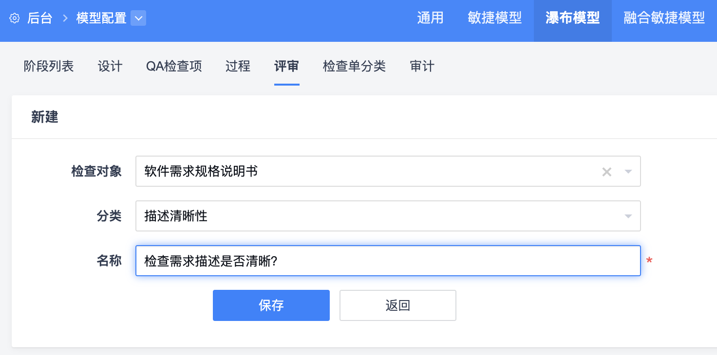 在后台--模型配置--瀑布模型--评审中,可以对基线评审对象添加检查清单、自定义版本号操作。