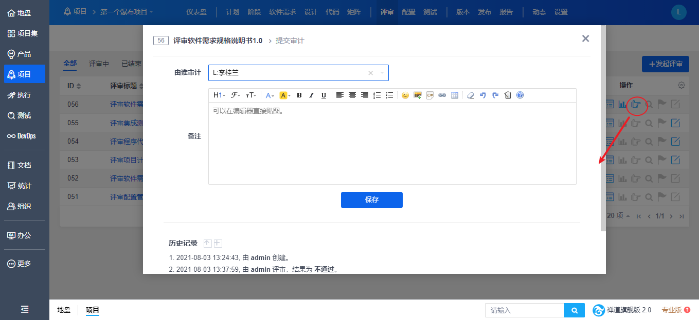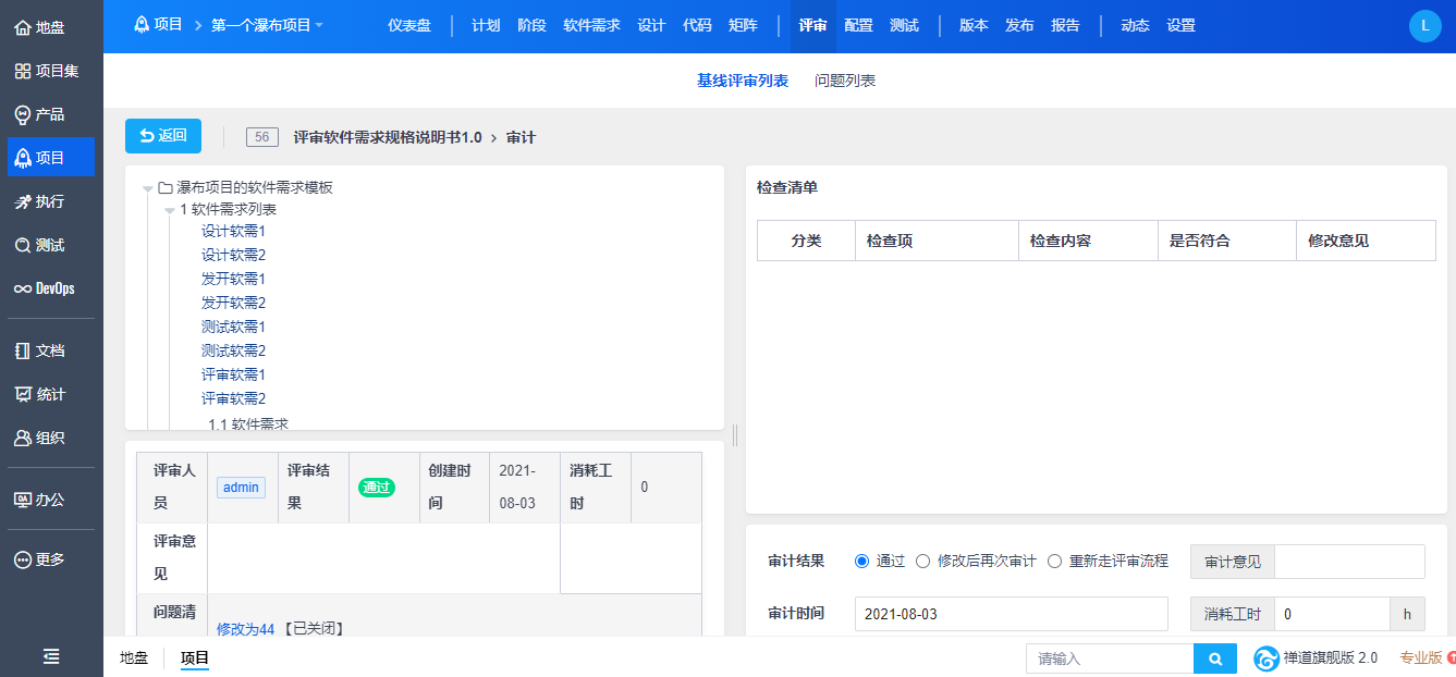 点击基线评审右侧操作栏的提交审计按钮,就可以进行提交审计操作。