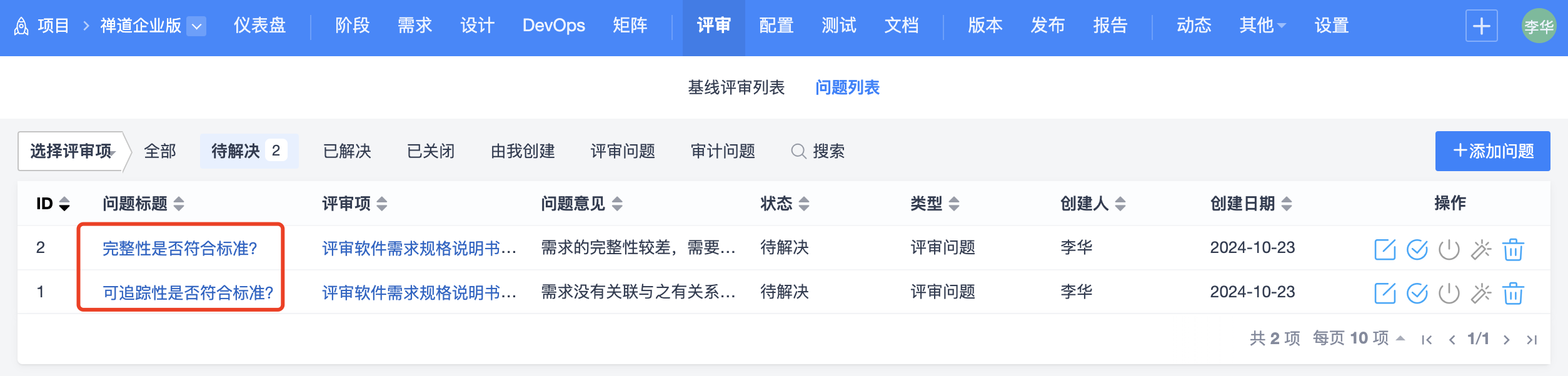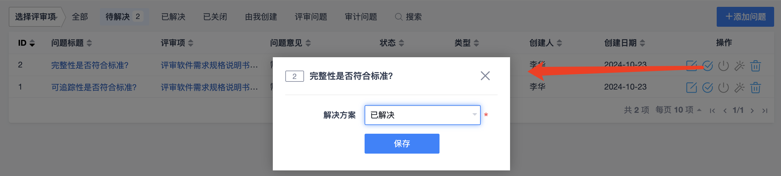 点击“保存”,然后可以在“评审”--“问题列表”中查看到具体问题。