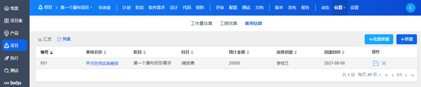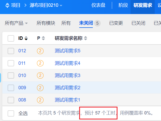 查看项目实际规模,到项目--需求列表里查看需求的总工时即可。