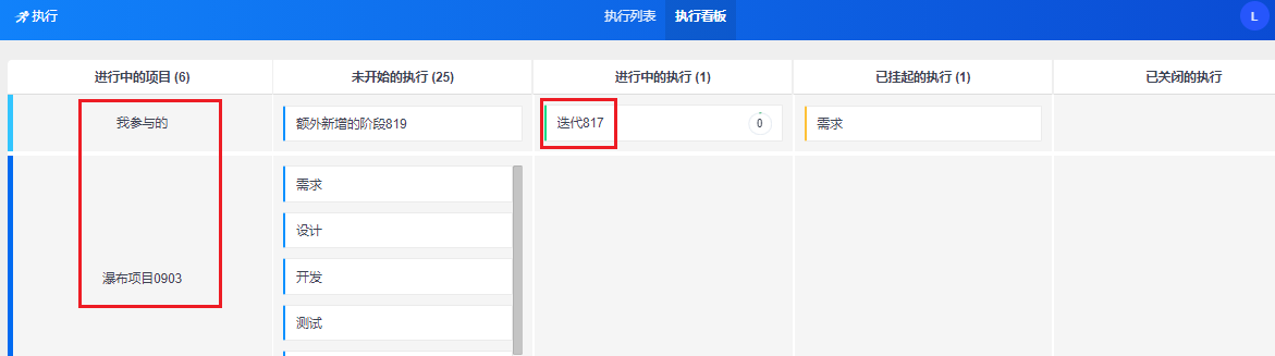 点击执行视图左上角的执行,下图红框位置,进入执行看板页面。