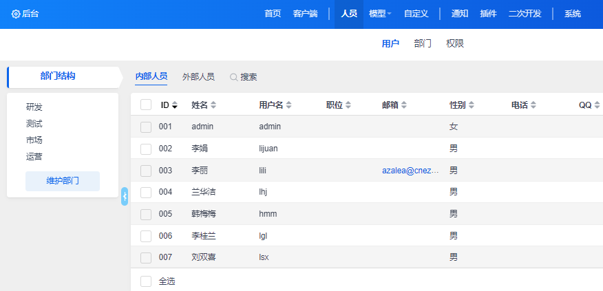 管理员维护组织部门后,接下来就可以维护用户。