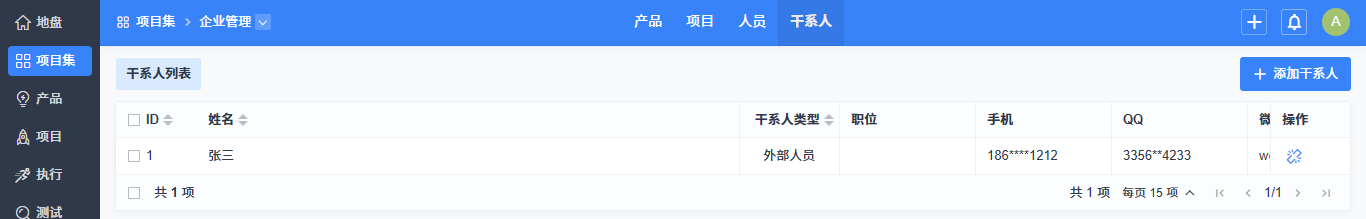在项目集的“人员”-“干系人”下,可以对项目集干系人进行维护。