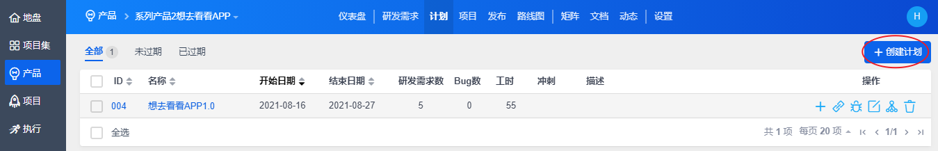 查看产品计划列表时,默认是列表展示。