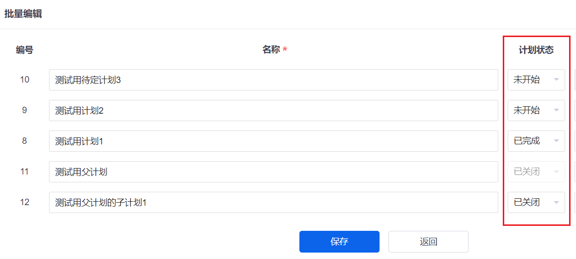 批量编辑计划时,也可以修改计划的状态。