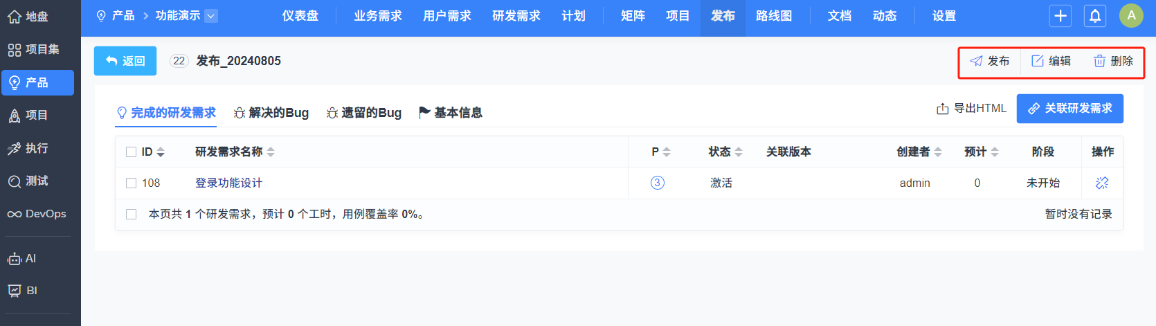 在测试完成后,产品经理可以进行发布。在禅道中,产品经理如何创建发布,可以观看视频了解:https://www.zentao.net/redirect-index-20706.html