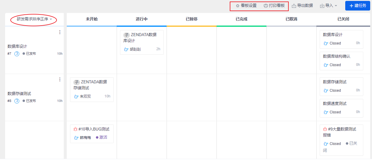 - 导入任务:可以导入所属项目相同的已关闭的执行的未完成和进行中的任务